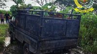 Sesampainya di lokasi, pelapor mendapati sebuah mobil pick-up warna hitam dengan Nopol BE 217 AN terperangkap lumpur, dan melihat dua orang berlari meninggalkan kendaraan tersebut.