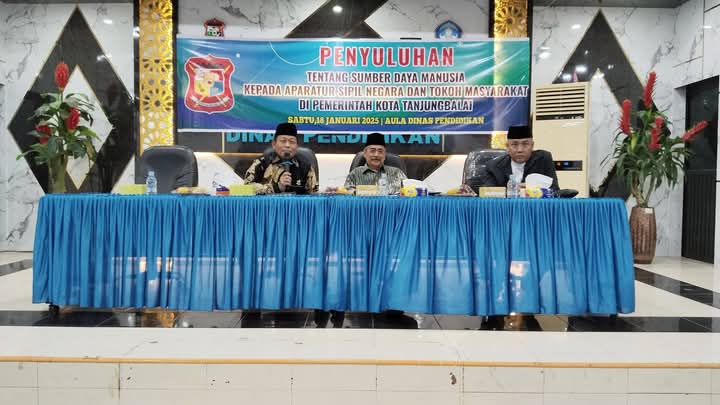 Tanjungbalai, Lingkaranistana. Id Wali Kota Tanjungbalai, H. Waris Tholib, menghadiri acara Penyuluhan Tentang Sumber Daya Manusia Kepada Aparatur Sipil Negara dan Tokoh Masyarakat di Pemerintahan Kota Tanjungbalai, di Aula Dinas Pendidikan Kota Tanjungbalai, Jalan Gaharu Kota Tanjungbalai, Sabtu (18/01/25) malam.