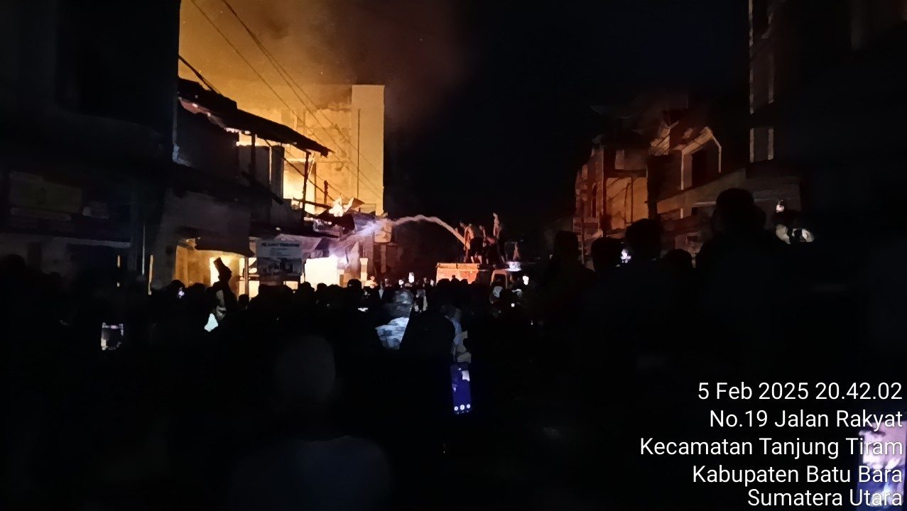Lingkaranistana.id- Sumatra Utara, Batu Bara- Pada sekitar pukul lebih kurang 20.42 wib, api membakar tiga ruko yang ada di jalan rakyat Kelurahan Tanjung Tiram Kecamatan Tanjung Tiram Kabupaten Batu Bara. Rabu 05/02/2025.