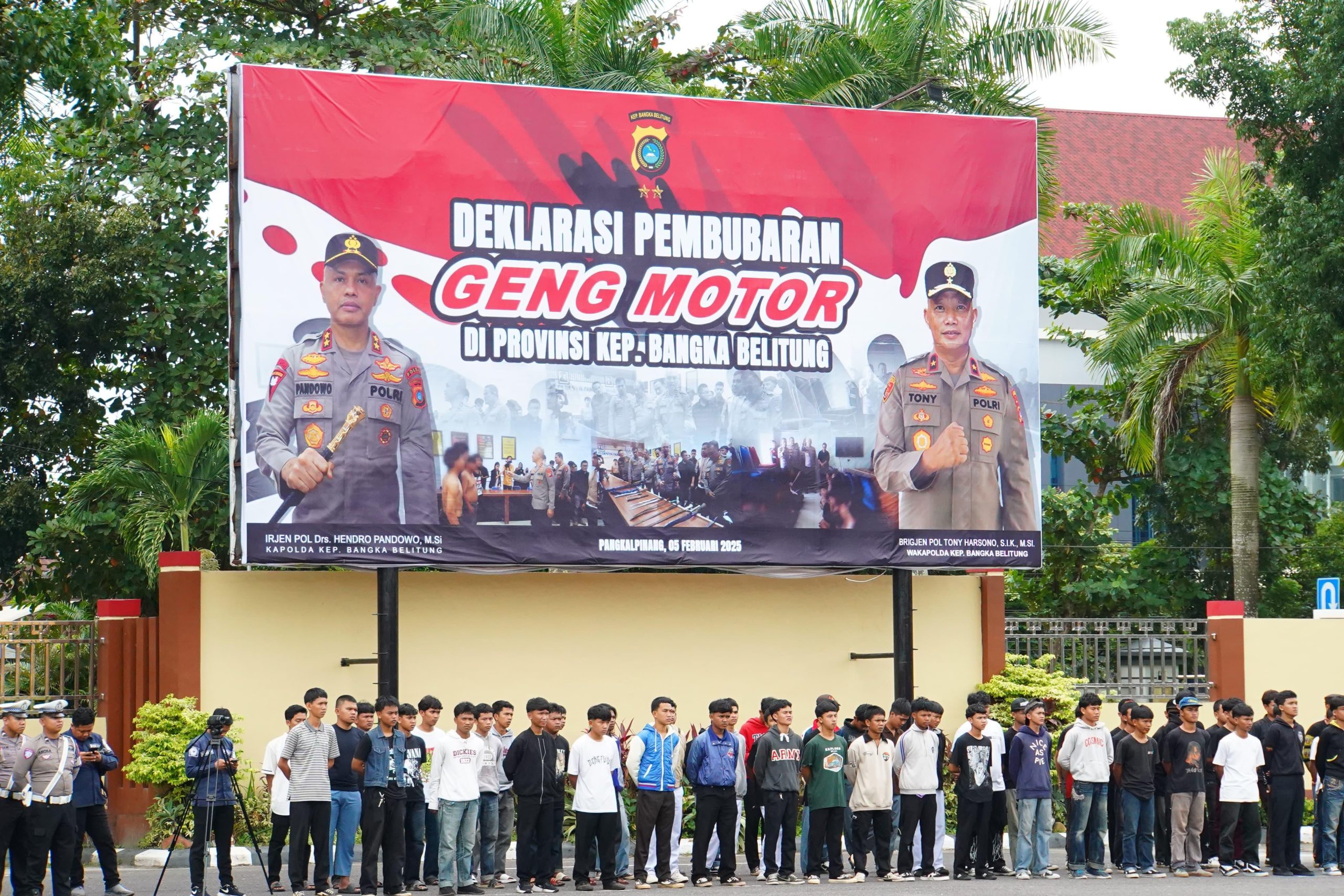 Lingkaranistana- Bangka Belitung- Kapolda Bangka Belitung Irjen Pol Hendro Pandowo memimpin apel deklarasi pembubaran geng motor yang berlangsung di halaman Mapolda, Rabu 05/02/2025.