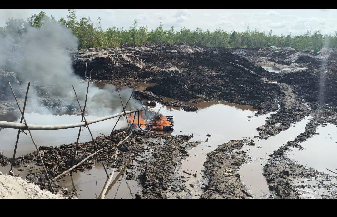 Menindak lanjuti informasi dari LPHD Wana Gambut Desa Sungai Pelang, Kapolres Ketapang langsung menurunkan tim Gabungan petugas Polres Ketapang bersama personel KPH (Kesatuan Pengendali Hutan) dan juga LPHD (Lembaga Penjaga Hutan Desa) Desa Sungai Pelang untuk turun menyasar lokasi Pertambangan Ilegal yang sudah merambah kawasan hutan desa sungai Pelang. Lokasi yang lahan gambut dan akses jalan yang belum memadai, petugas gabungan harus berjalan kaki menuju ke lokasi pertambangan tersebut.