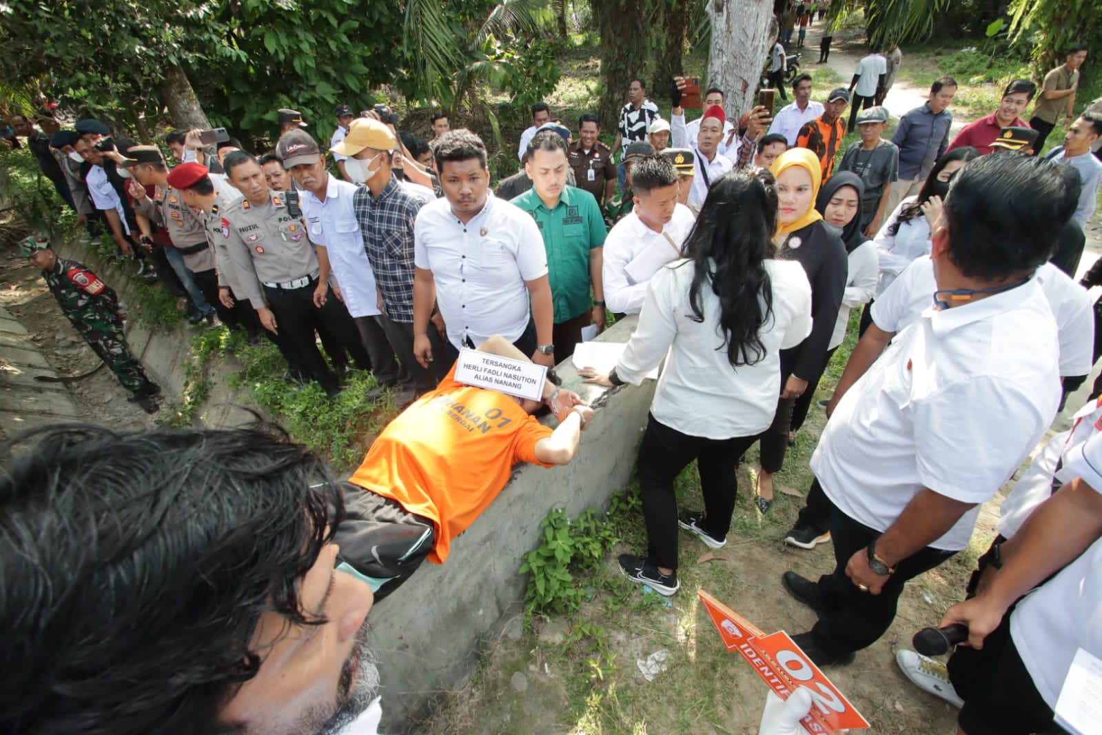 Polres sergai menggelar rekonstruksi kasus pembunuhan ,pencurian dengan kekerasaan serta kekerasaan terhadap anak yang mengakibatkan korban meninggal dunia ,kegiatan ini menggelar langsung di Dusun III, desa Lubuk Saban, kecamatan Perbaungan kabupaten Serdang Bedagai Provinsi Sumatera Utara (sumut) Rabu, 12/02/2025.