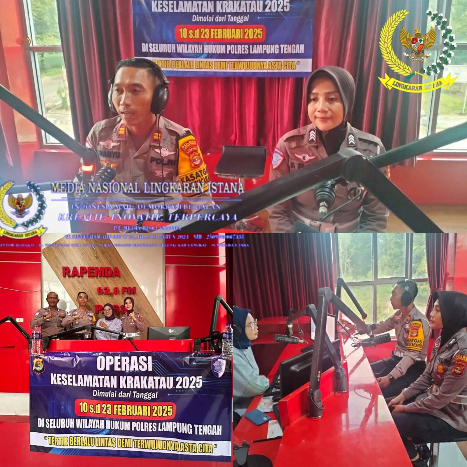 Lampung Tengah Lingkaran Istana.id – Dalam rangka Operasi Keselamatan Krakatau 2025, Satlantas Polres Lampung Tengah melakukan sosialisasi melalui siaran Radio Pemerintah Daerah (Rapemda) setempat, pada Rabu (12/2/25) pagi.
