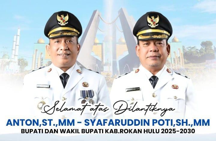 Kabupaten Rokan Hulu (Rohul) resmi memiliki pemimpin baru dari hasil pelaksanaan Pilkada Serentak 27 November 2024. Setelah dilantiknya Anton ST MM dan H. Syafaruddin Poti SH MM sebagai Bupati dan Wakil Bupati Rokan Hulu Periode 2025-2030 oleh Presiden Republik Indonesia Prabowo Subianto di Istana Negara Jakarta.