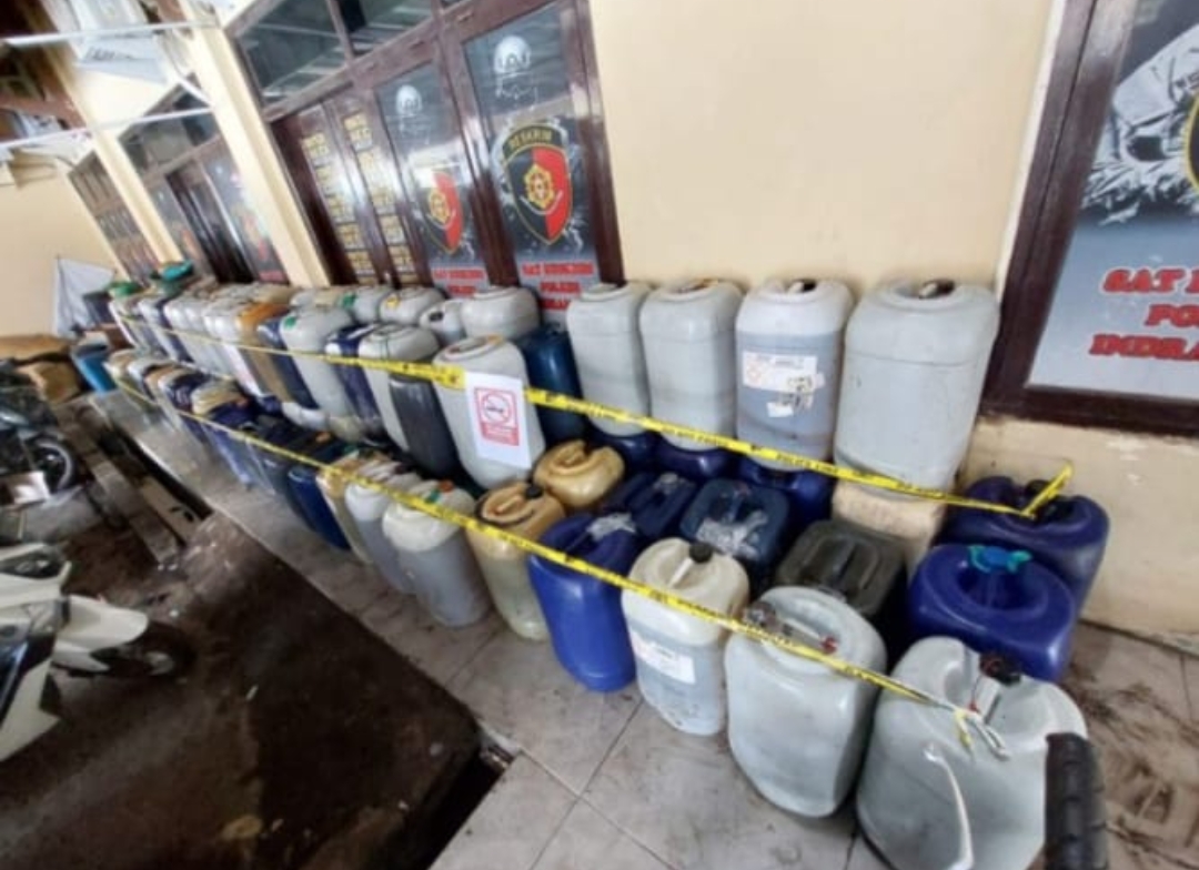 Setelah mendapatkan informasi tersebut, petugas langsung melakukan pengecekan ke rumah tersangka. Hasilnya, petugas menemukan tumpukan jerigen berisi BBM jenis solar yang disimpan di dalam garasi rumahnya.