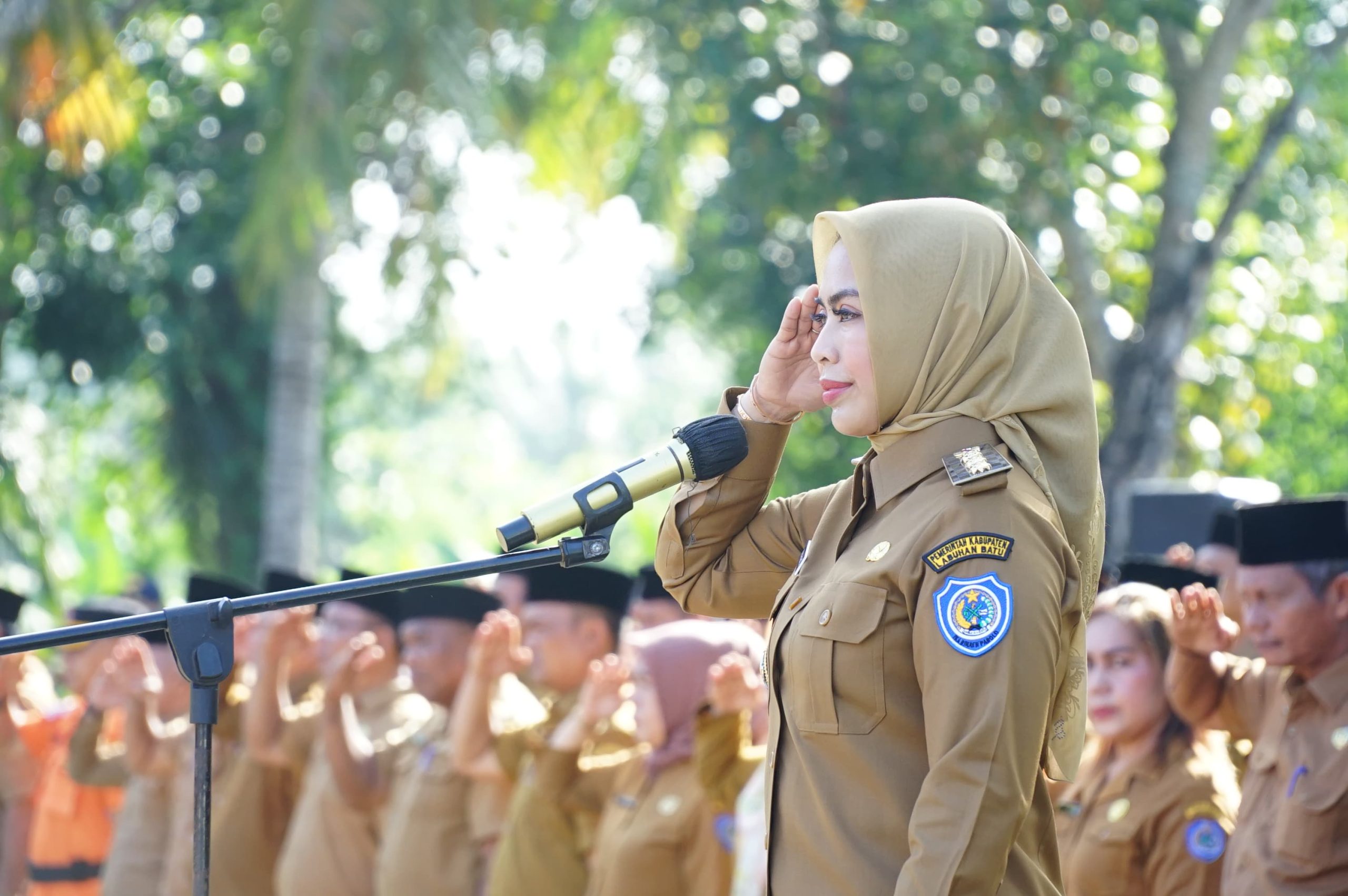 Bupati Labuhanbatu dr. Hj. Maya Hasmita, Sp.OG, MKM didampingi Wakil Bupati Labuhanbatu H. Jamri, ST perdana memimpin apel gabungan di lingkungan Pemerintah Kabupaten Labuhanbatu. Senin (10/03/2025) di halaman Diklat BKPP Labuhanbatu.