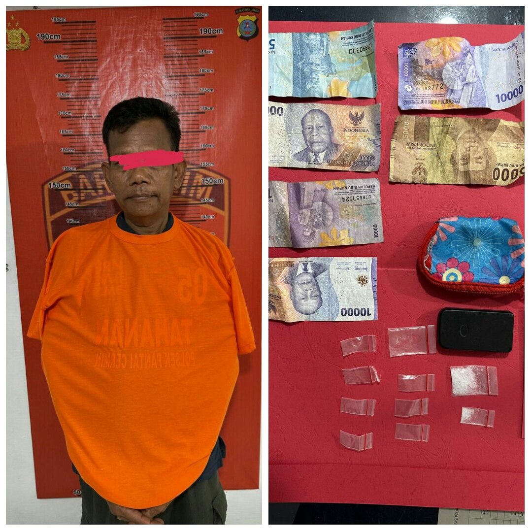 Tersangka yang diduga pengedar narkoba ditangkap bernisial Ismail alias Mail, desa kota pari, polisi menyita barang bukti 1 paket sabu berukuran sedang sebesar 1,35 gram, 1 paket kecil sebesar 0,65 gram, delapan plastik klip transparan kosong, 1 timbangan elektrik, 1 dompet kecil berisi uang tunai Rp 95 ribu.