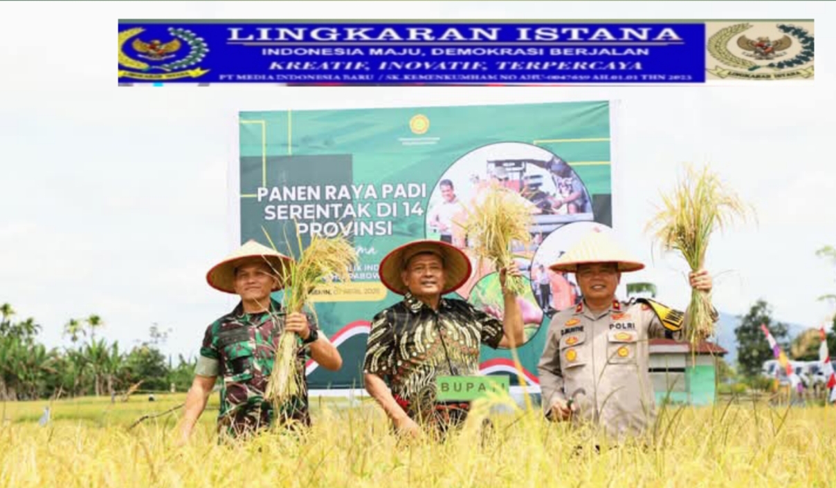 SIDIKALANG, Dairi.Sumut- Bupati Dairi, Ir. Vickner Sinaga pada senin 07 maret 2025 mengikuti kegiatan panen raya padi secara serentak 14 Provinsi Tahun 2025 yang dibuka secara langsung Presiden RI Prabowo Subianto melalui virtual (zoom meeting) yang kali ini digelar di Desa Mbelang Malum Kecamatan Sidikalang Kabupaten Dairi Provinsi Sumatera Utara.