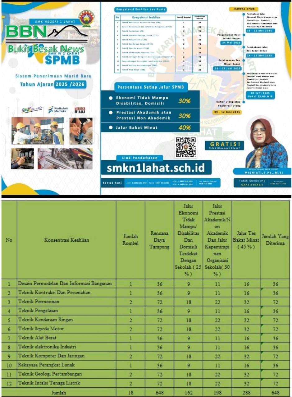 Lahat, L.i- SMK Negeri 1 Lahat resmi membuka pendaftaran Sistem Penerimaan Murid Baru (SPMB) Tahun Ajaran 2025/2026.