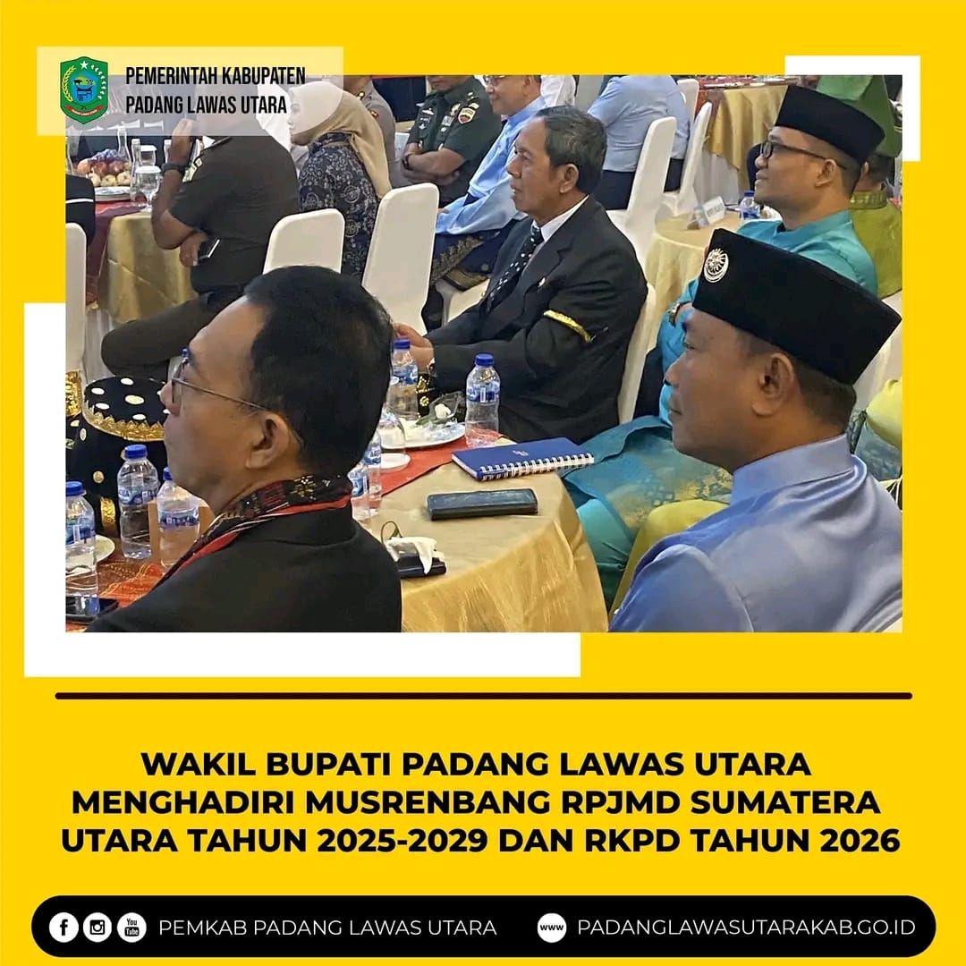 Medan – Li Wakil Bupati Padang Lawas Utara H. Basri Harahap menghadiri Musyawarah Perencanaan Pembangunan (Musrenbang) Rencana Pembangunan Jangka Menengah Daerah (RPJMD) Sumatera Utara 2025-2029 dan Rencana Kerja Pemerintah Daerah (RKPD) Tahun 2026 di Aula Raja Inal Siregar, Kantor Gubernur Sumatera Utara, Medan, Senin (5/5/2025).
