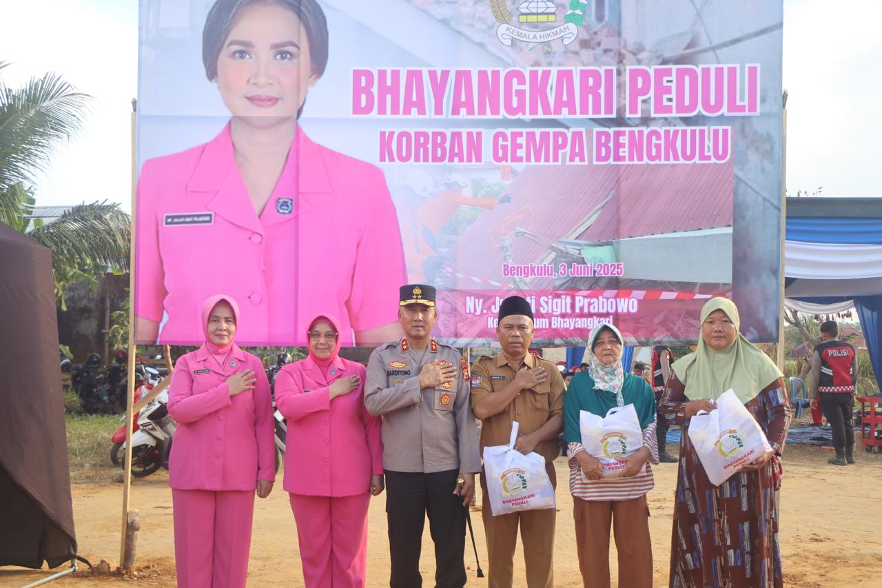 KAUR, Li.id- Sebagai bentuk empati dan kepedulian terhadap masyarakat yang terdampak bencana gempa bumi, Kepala Kepolisian Daerah (Kapolda) Bengkulu, Irjen Pol Mardiyono, S.I.K., M.Si., didampingi oleh Ketua Bhayangkari Daerah Bengkulu, Ny. Yanti Mardiyono, menyalurkan bantuan kemanusiaan yang berasal dari Ketua Umum Bhayangkari.