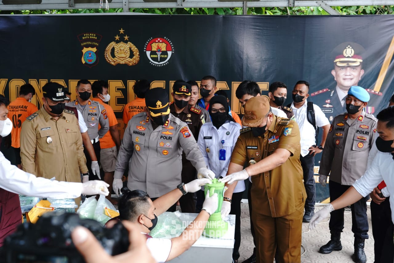 Pemusnahan narkotika ini merupakan hasil dari beberapa kasus yang telah ditangani oleh Polres Batu Bara, total barang bukti yang dimusnahkan adalah 27.376,49 gram shabu, 24.574 gram ganja, dan 22.092,27 gram pil ekstasi.