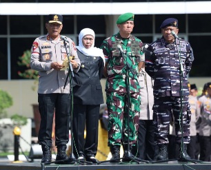 Sementara itu Gubernur Jatim Khofifah juga memberikan himbauan dalam apel dan doa bersama agar masyarakat tidak mudah terprovokasi maupun memprovokasi.