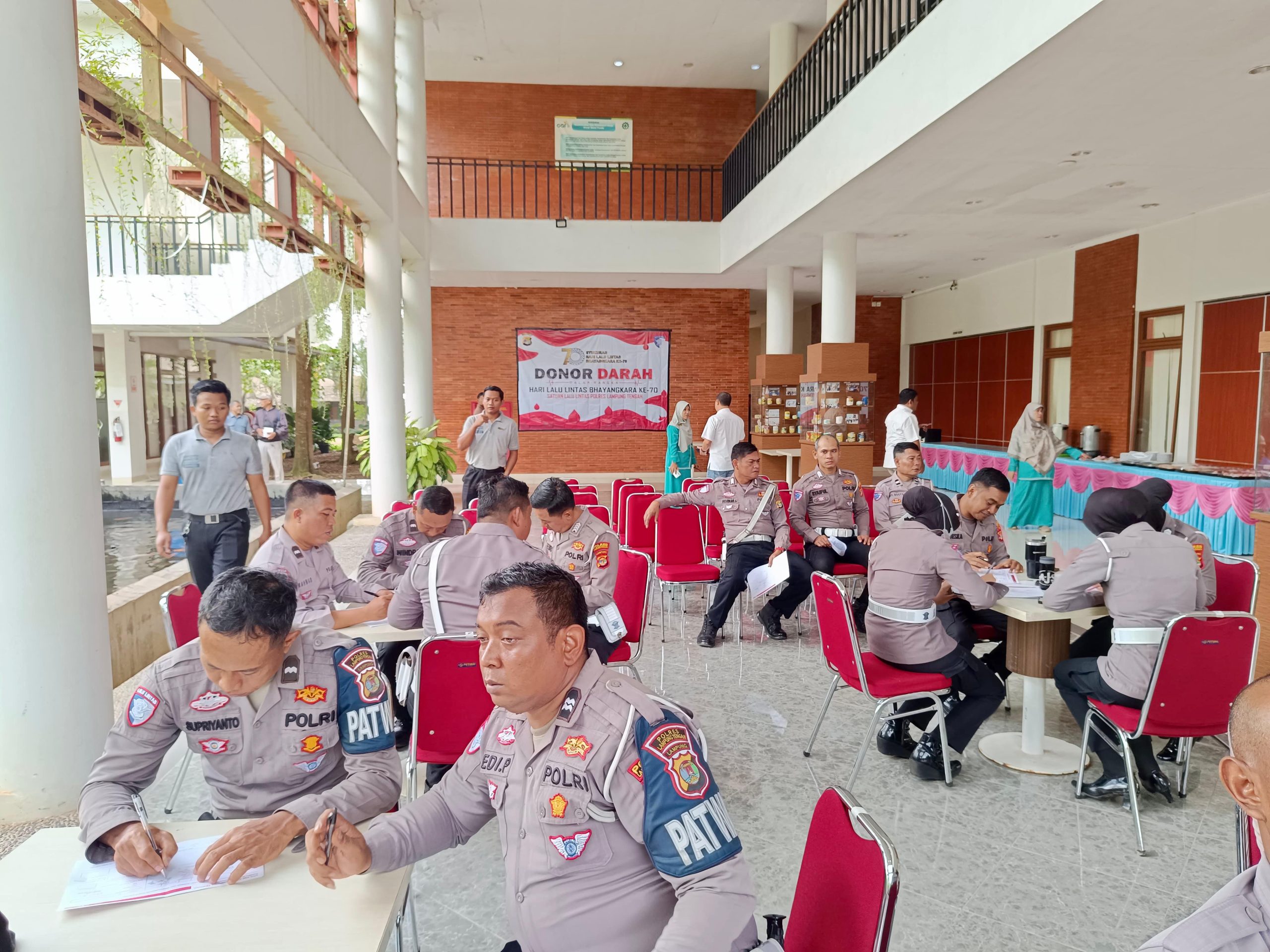 Lampung Tengah Lingkaran istana id.— Dalam rangka memperingati Hari Lalu Lintas Bhayangkara ke-70, Sat Lantas Polres Lampung Tengah menggelar kegiatan bakti kesehatan berupa donor darah.