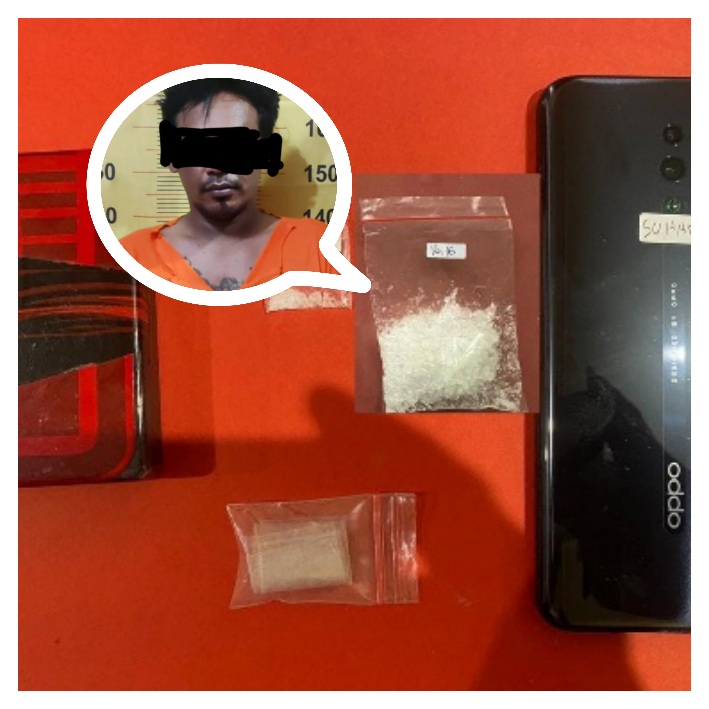 Saat penggeledahan, polisi menemukan satu kantong plastik kecil berisi sabu seberat 0,054 gram, enam plastik klip kosong, sebuah kotak merah-hitam, dan satu unit ponsel Oppo warna hitam.