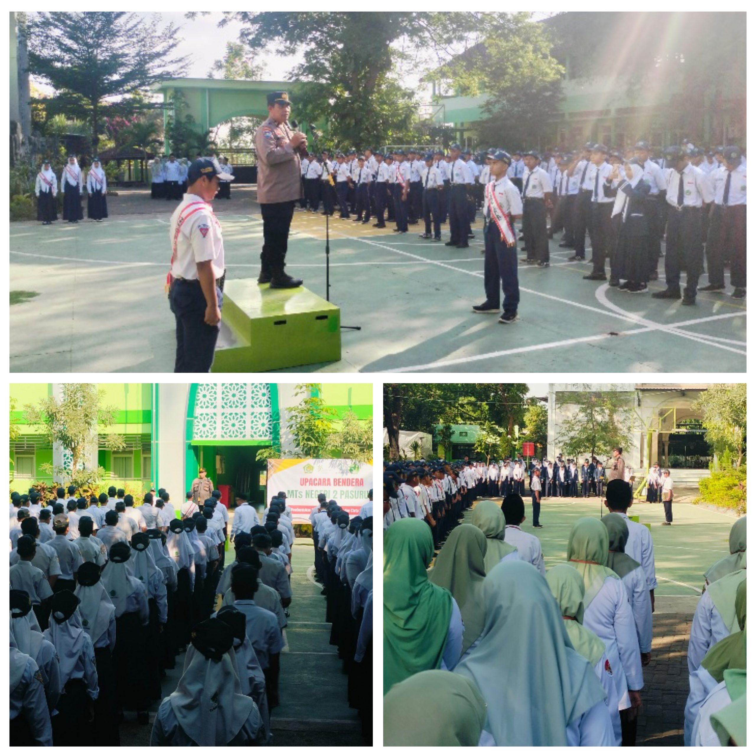 KBO Binmas Polres Pasuruan, Iptu Bambang, S.Sos, bertindak sebagai pembina upacara bendera. Melalui kesempatan ini, ia dapat bertemu langsung dengan ratusan pelajar dan para dewan guru untuk menyampaikan pesan-pesan kamtibmas.