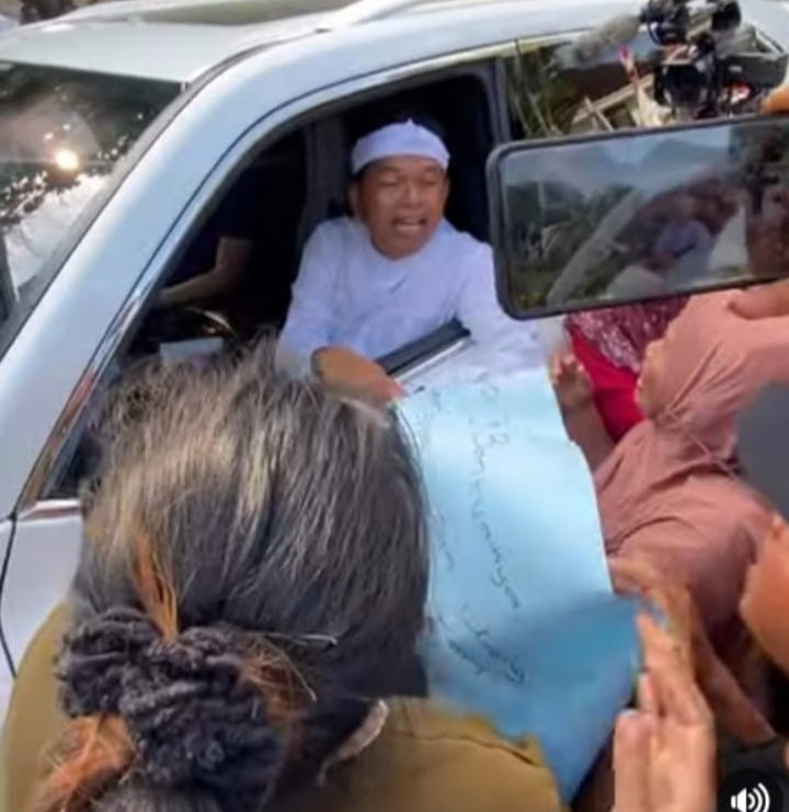 Menanggapi hal itu, Gubernur Dedi Mulyadi sempat membuka kaca mobil dan menanyakan perihal yang terjadi. “Kenapa-kenapa?” tanya Dedi. “Soal uang tabungan pak,” jawab sang ibu.