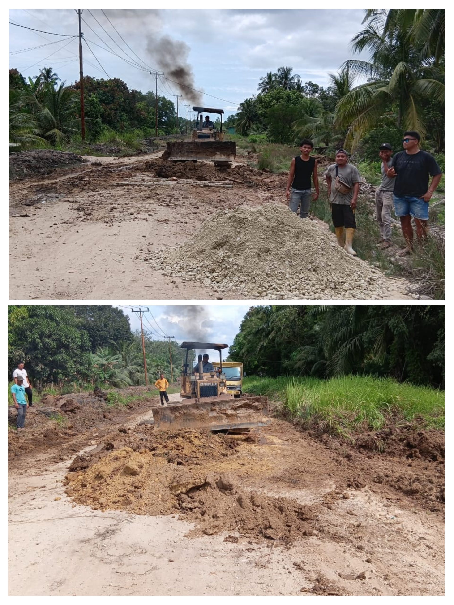 Sejak matahari terbit, suasana gotong royong tampak hidup. Para pemuda dengan semangat tinggi bekerja sama mengumpulkan kayu yang akan digunakan sebagai gambangan—penopang sementara pada bagian jalan yang rusak untuk memudahkan akses warga. Warga dari berbagai usia juga ikut turun tangan, saling membantu mengangkut material dan meratakan bagian jalan yang menjadi prioritas perbaikan.