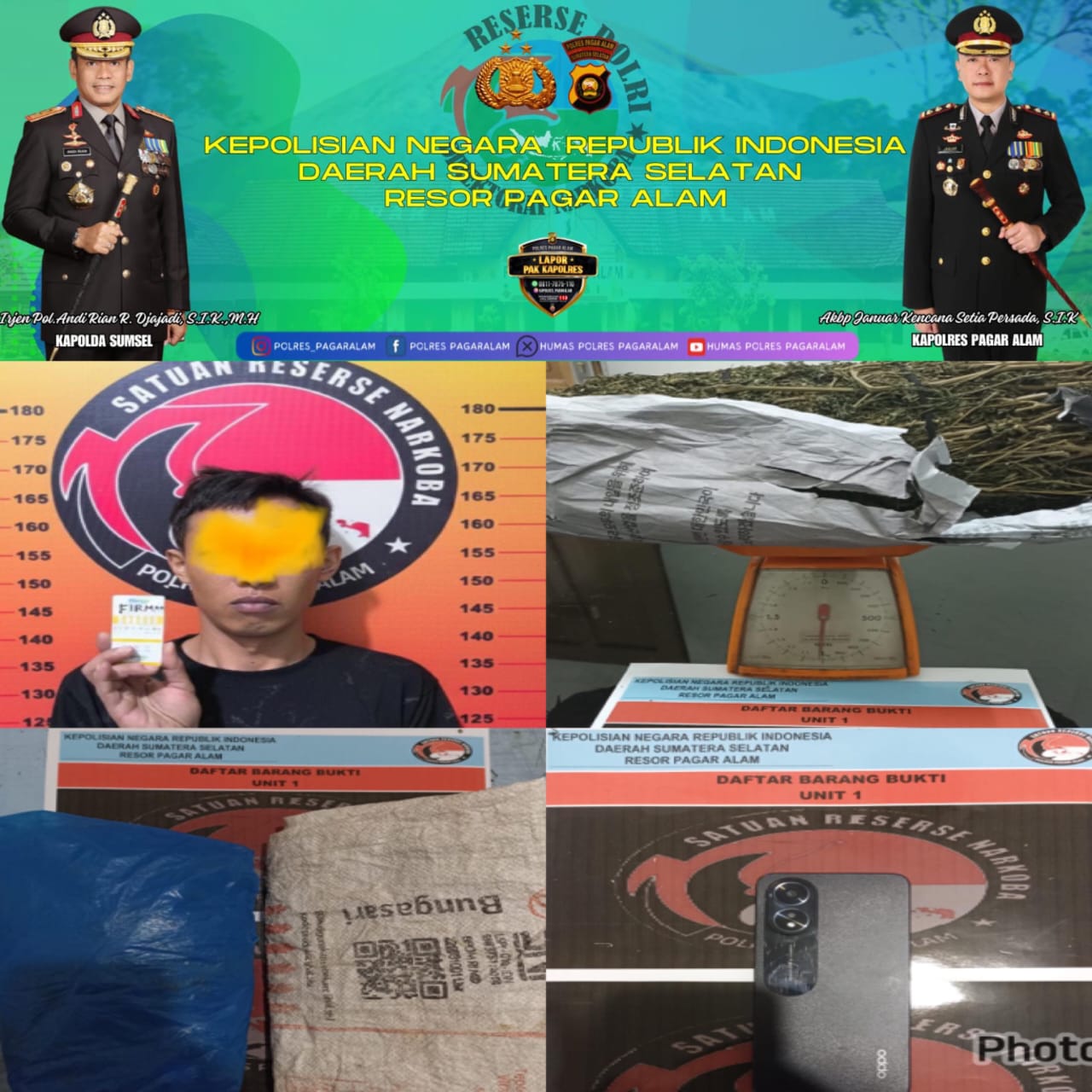Kapolres Pagar Alam Akbp Januar Kencana Setia Persada ,S.I.K melalui Kasat Res Narkoba Polres Pagar Alam, Iptu Doris Pidriandi,S.H,M.S.i mengatakan bahwa penangkapan ini berawal dari laporan masyarakat yang melihat aktivitas mencurigakan di rumah kontrakan tersebut.