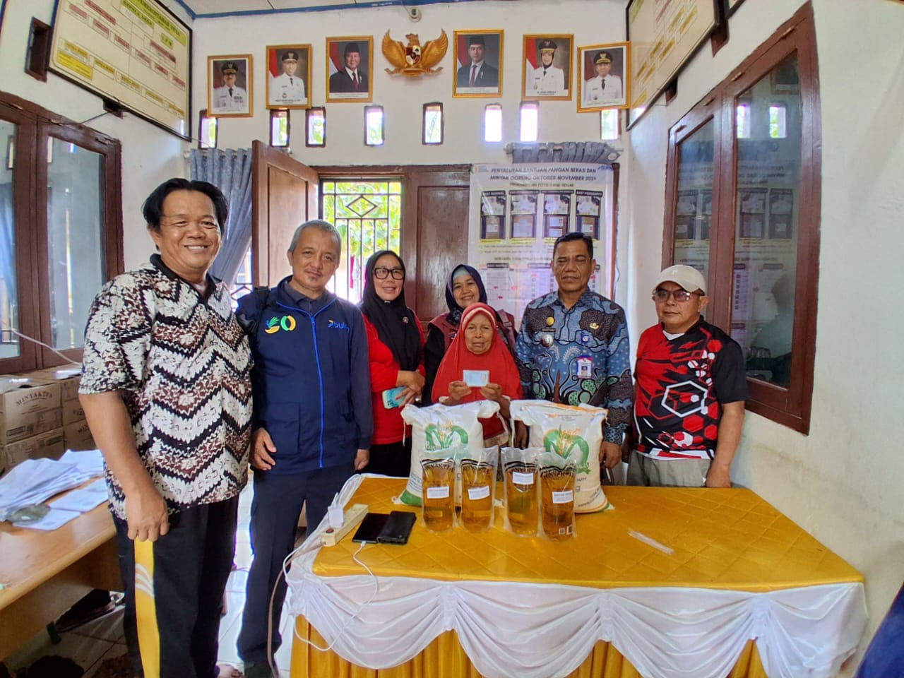 Petugas desa melakukan pencatatan dan verifikasi data penerima manfaat saat penyaluran bantuan beras Bulog di Kantor Desa hujan mas pada jumat 5 Desember 2025.
