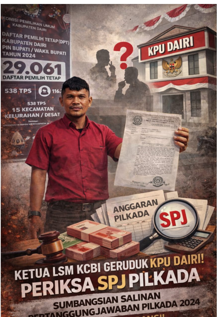 Sikap tersebut disampaikan setelah LSM KCBI melayangkan surat keberatan resmi bernomor 007/PC-LSM KCBI/KBR/KPU-D/I/2026, sebagai tanggapan atas dua surat balasan dari KPU Kabupaten Dairi bernomor 12/HM.03.2-SD/1211/1/2026 dan 11/HM.03.2-SD/1211/1/2026, yang diterima pada 12 Januari 2026.