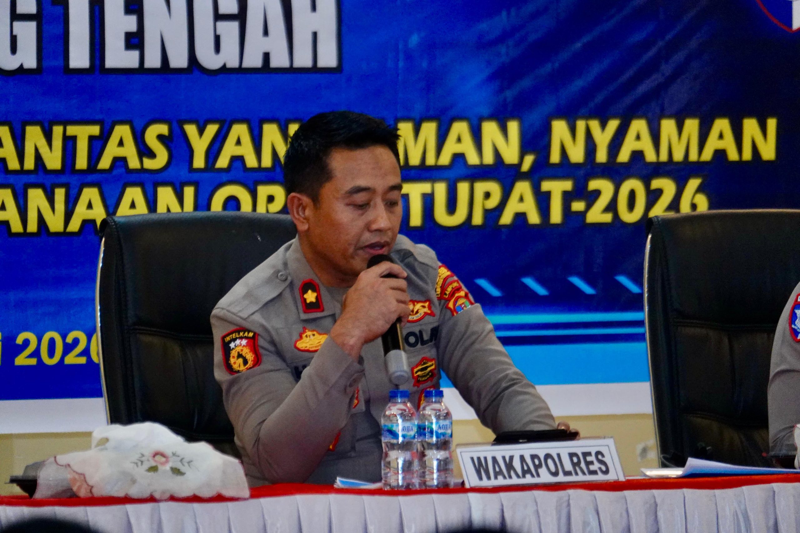 Hal tersebut disampaikan Wakapolres Lampung Tengah, Kompol Heru Sulistyananto, S.H., M.H., mewakili Kapolres, AKBP Charles Pandapotan Tampubolon, S.I.K., S.H., M.H., saat memimpin kegiatan Lat Pra Ops Keselamatan Krakatau 2026 di Aula Atmani Wedhana Mapolres setempat, pada Jumat (30/1/26).