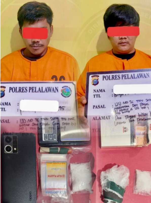 Kapolres Pelalawan AKBP John Louis Letedara SIK melalui Kasat Resnarkoba IPTU Haryanto Alex Sinaga SH MH didampingi KBO Iptu Masril SH MH, Selasa (3/2/2026) membenarkan adanya penangkapan dua pelaku pengedar narkoba jenis sabu tersebut.