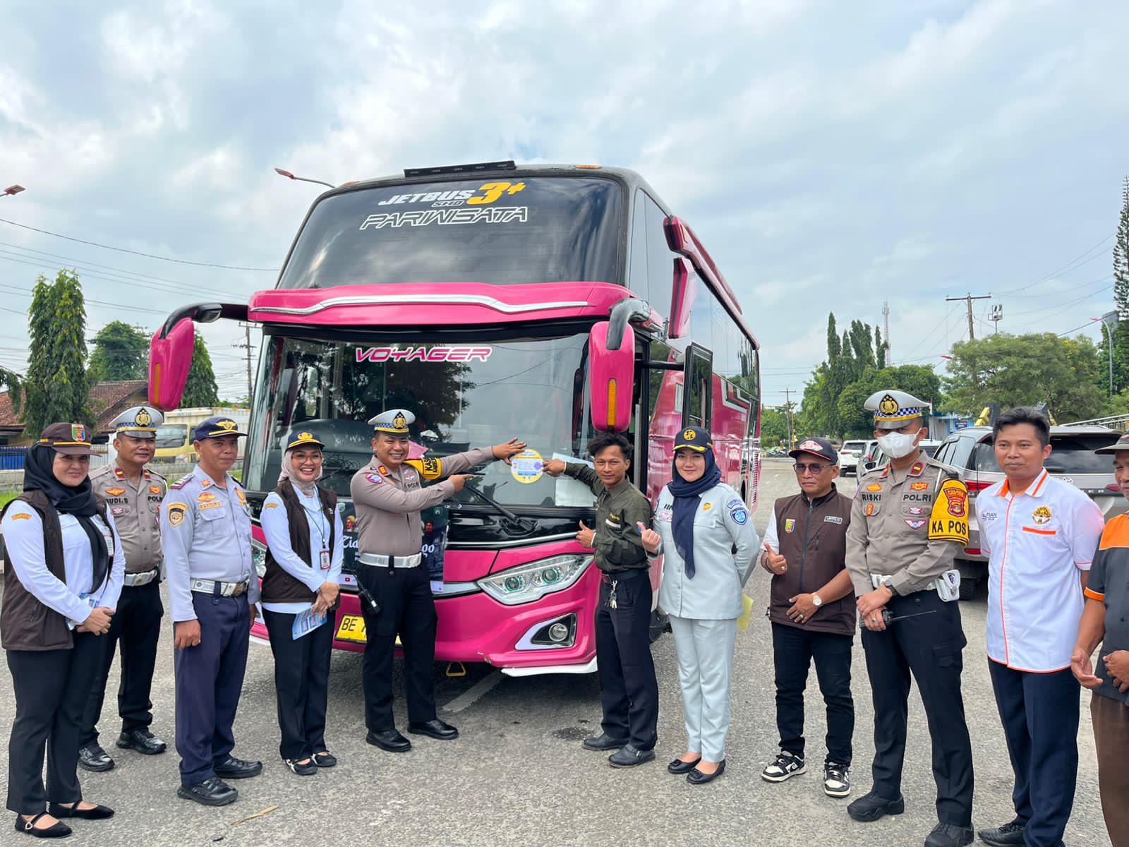 Kegiatan tersebut dilaksanakan di simpang tugu pepadun Gunung Sugih Kabupaten Lampung Tengah, sebagai upaya memastikan kelaikan kendaraan angkutan umum demi keselamatan pengguna jalan.