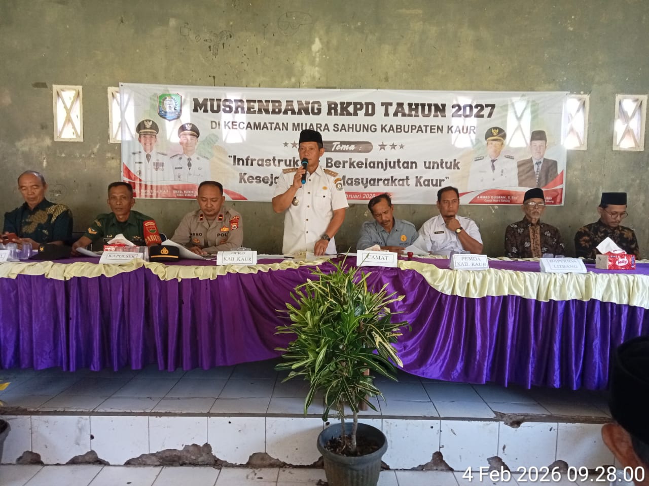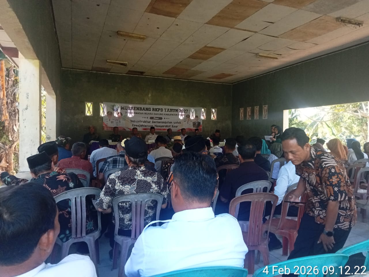Kau Bengkulu Lingkaran istana id Rabu 4- 2-2026 Kegiatan (Musrenbang) Musyawarah rencana Pembangunan pemerintah daerah 2027, tingkat kecamatan diselenggarakan di aula kantor Kecamatan muara sahung Kabupaten kaur rabu 4-2-2027