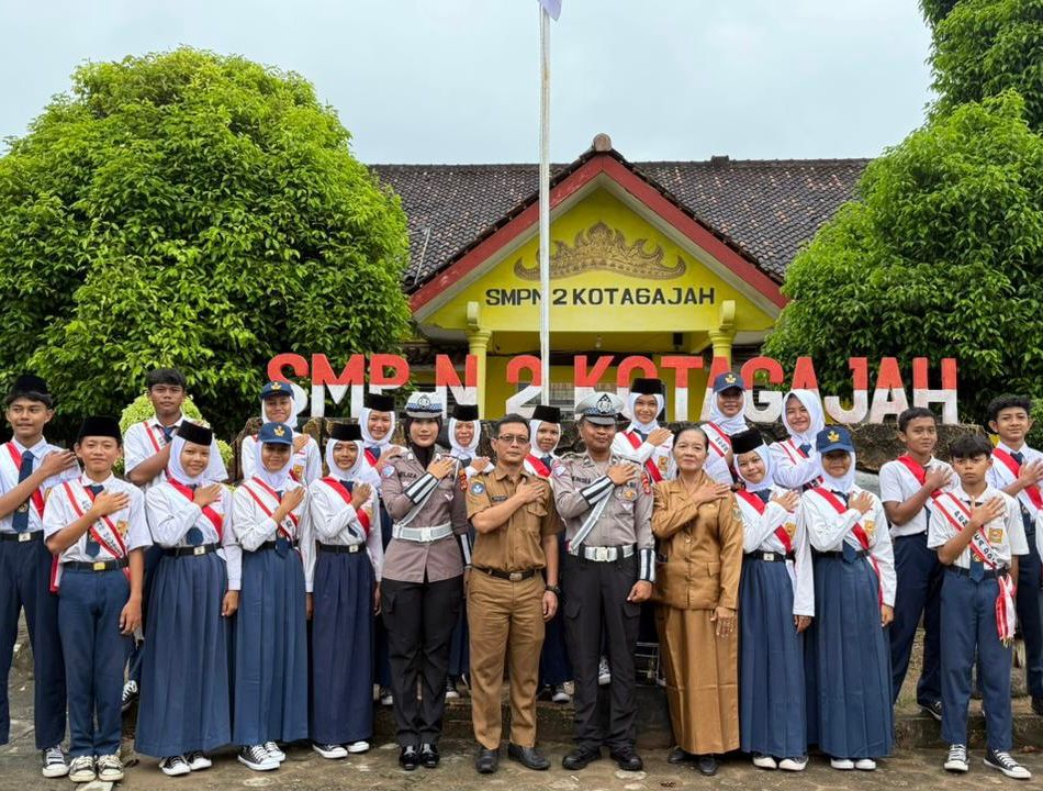 Selain bertindak sebagai pembina upacara di masing-masing sekolah, personel Satlantas Polres Lampung Tengah juga memanfaatkan momen tersebut untuk menyampaikan edukasi dan pesan keselamatan berlalu lintas secara langsung kepada para pelajar.