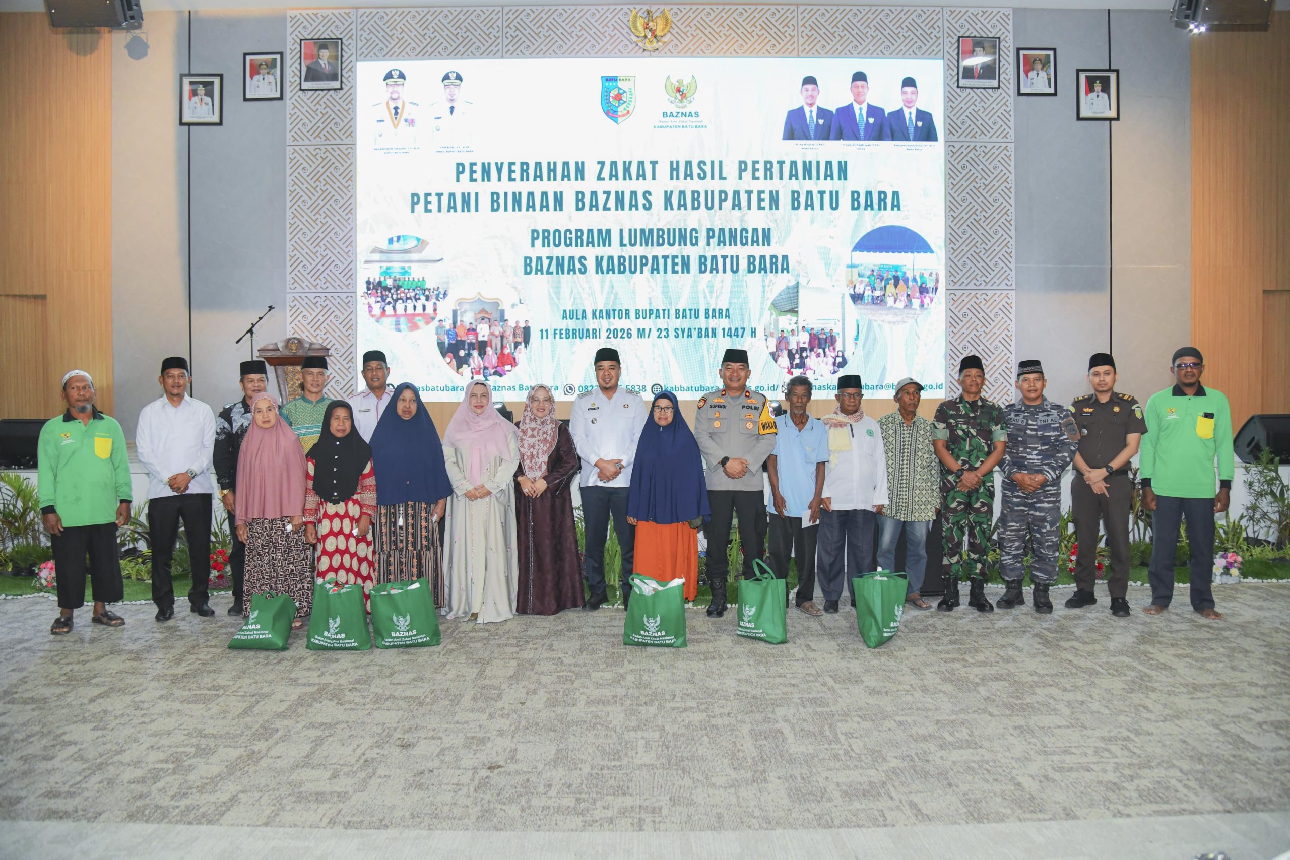 Pada kesempatan tersebut, Pemerintah Kabupaten Batu Bara juga menyerahkan santunan dan paket sembako kepada 30 anak yatim/piatu serta 125 kelompok tani sebagai bentuk kepedulian sosial.