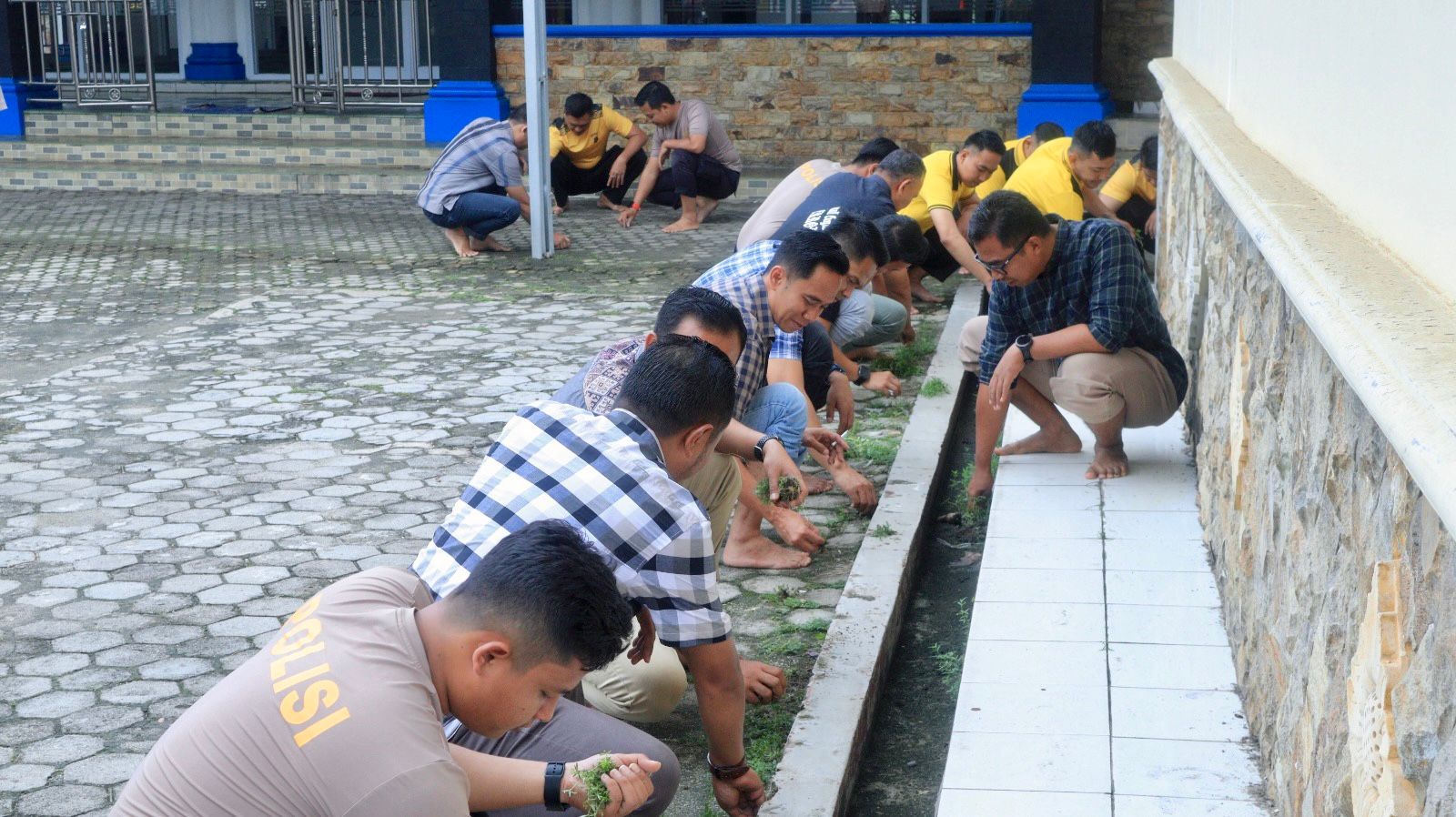 Aksi bersih-bersih difokuskan pada pembersihan rumput liar di lingkungan Mako, pembersihan saluran air guna mengantisipasi genangan saat musim hujan, serta pembersihan rumah ibadah, sebagai bentuk kepedulian terhadap kebersihan dan kenyamanan tempat ibadah di lingkungan Mapolres.