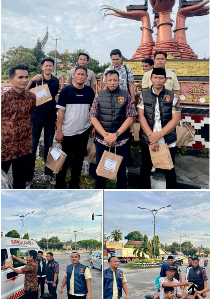 Lampung Tengah.Lingkaran istana id.– Dalam semangat berbagi dan mempererat tali silaturahmi di bulan suci Ramadan 1447 Hijriah, Sat Reskrim Polres Lampung Tengah, Polda Lampung, menggelar aksi sosial dengan membagikan ratusan paket takjil kepada para pengguna Jalan Lintas Sumatera, tepatnya di sekitar Tugu Pepadun, Jumat (20/2/26).