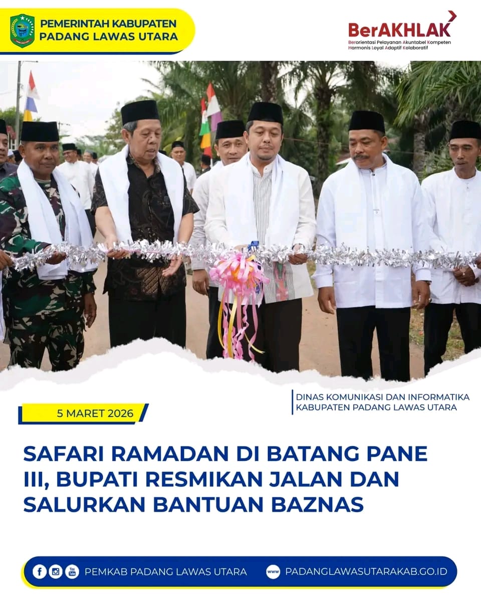 Sebelum rangkaian Safari Ramadan dimulai, Bupati terlebih dahulu melakukan prosesi gunting pita sebagai tanda diresmikannya peningkatan jalan ruas Batang Pane II menuju Batang Pane III sepanjang 450 meter yang bersumber dari APBD tahun 2025.