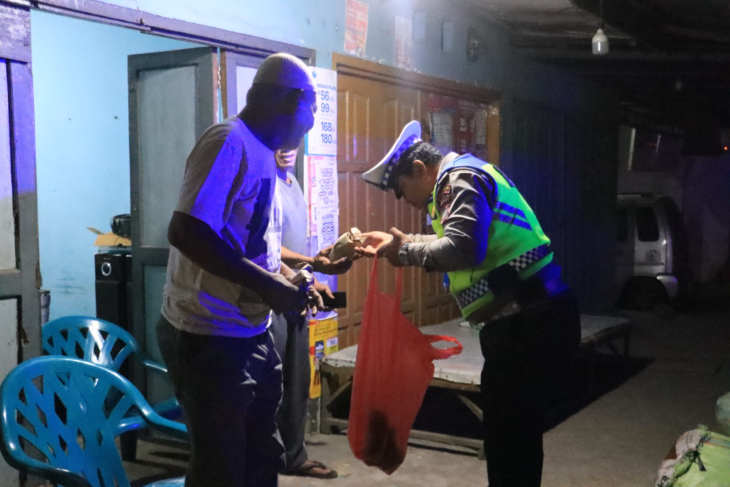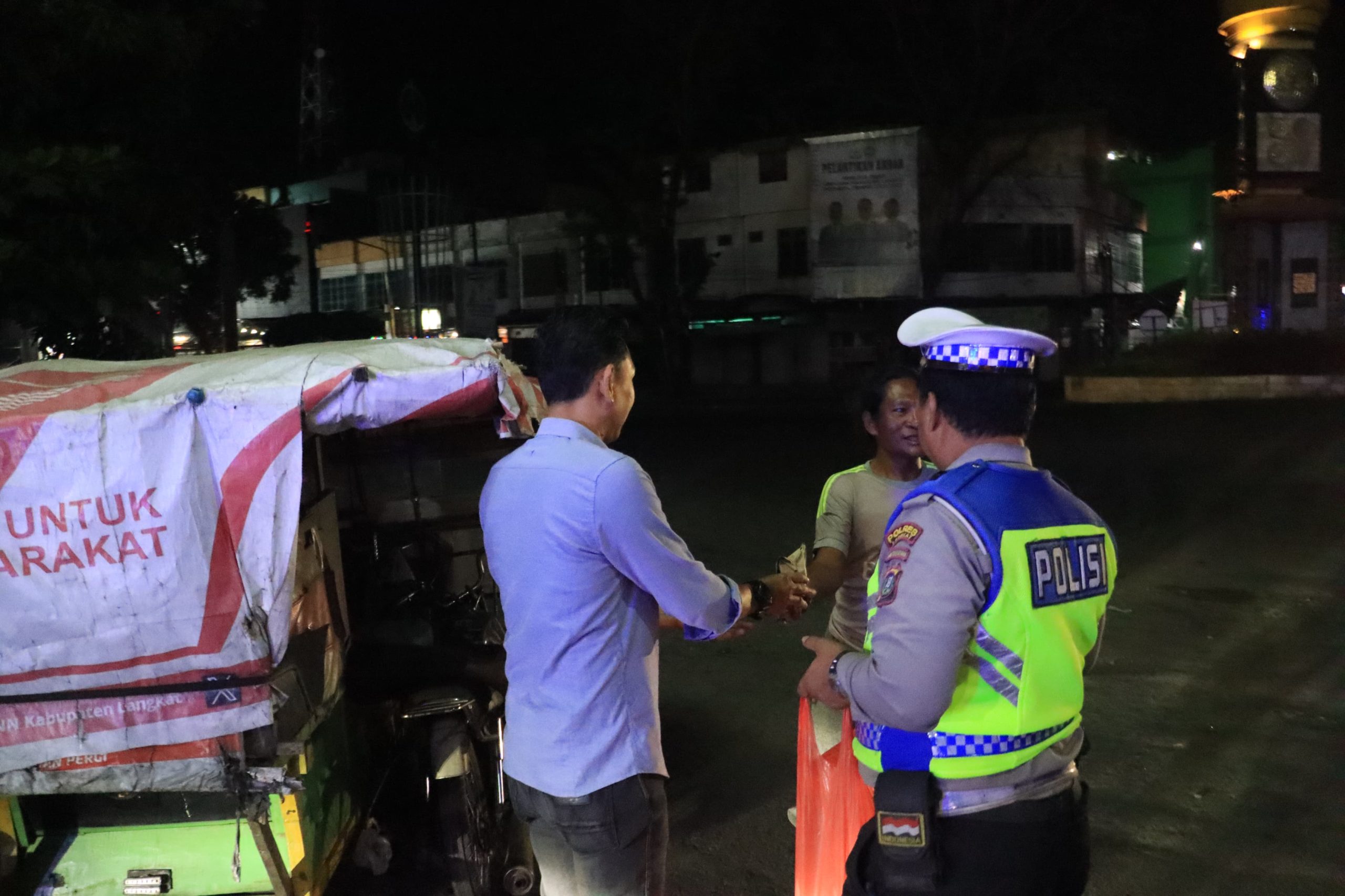 Dalam kegiatan tersebut, personel Polres Langkat membagikan sebanyak 100 bungkus nasi sahur kepada masyarakat yang melintas di lokasi, baik pengendara sepeda motor, mobil, maupun pengemudi becak. Selain berbagi makanan sahur, personel juga memberikan imbauan kepada masyarakat agar tetap tertib berlalu lintas dan mengutamakan keselamatan selama berkendara, khususnya pada waktu menjelang sahur.