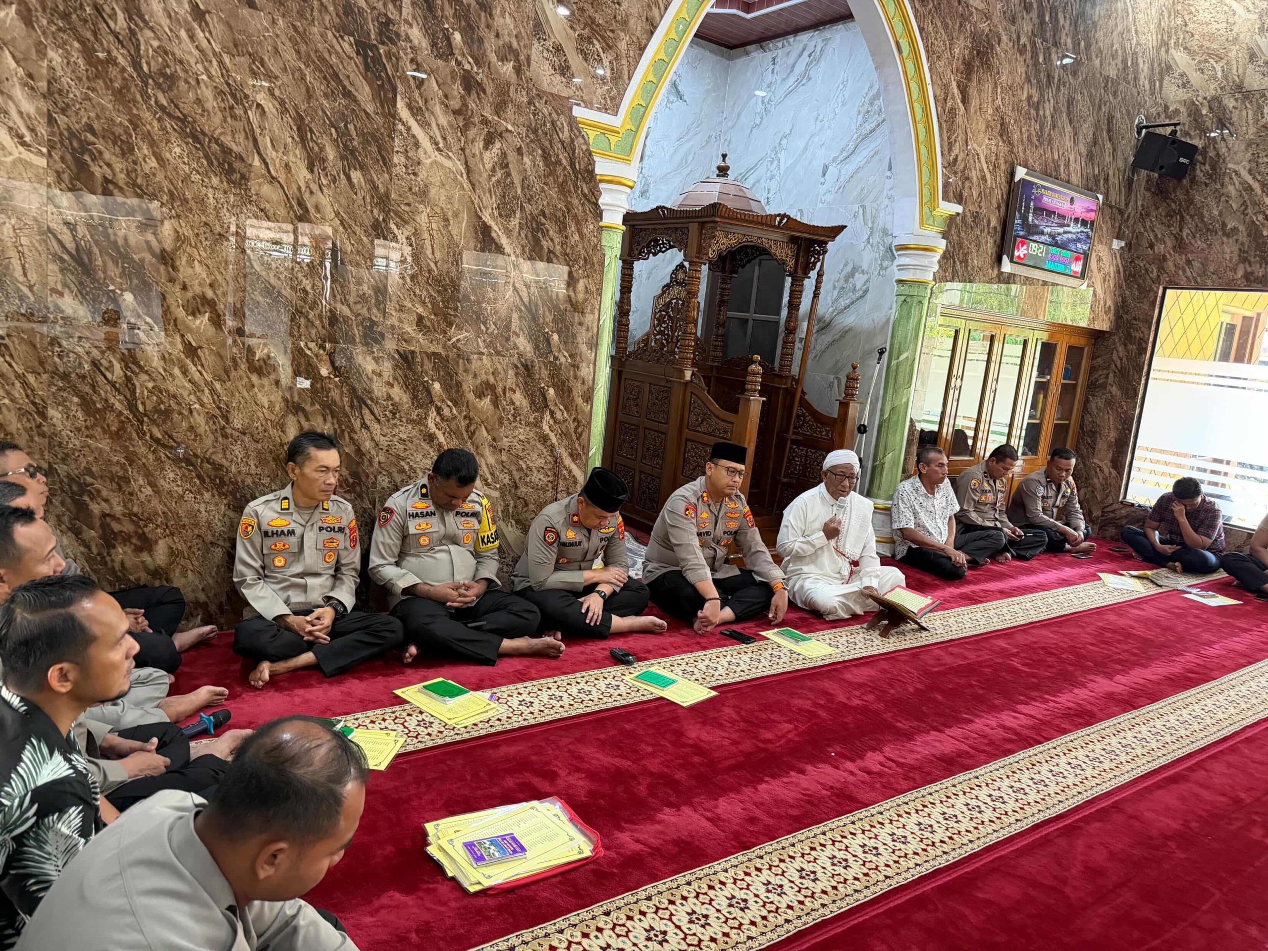 Kegiatan Binrohtal bagi personel beragama Islam dilaksanakan di Masjid Darusalam Polres Langkat dengan mengusung tema *“Meningkatkan Iman dan Ketakwaan setelah Lebaran.”*