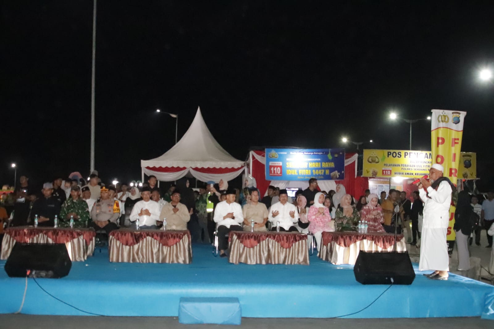 SERGAI (Sumut)– Lingkaran istana.id Kapolres Sergai AKBP Jhon Sitepu, SIK, MH, menghadiri kegiatan pelepasan pawai takbiran yang dipimpin oleh Bupati Sergai H. Darma Wijaya beserta Pj. Sekda Prov. Sumut Sulaiman Harahap, SH, M.Sp, CGCAE, dan Forkopimda Kab Sergai yang berlangsung di Alun-alun Kab. Sergai, pada malam takbiran.