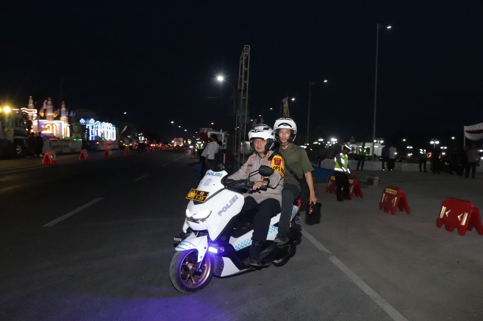 Kemudian Kapolres Sergai monitoring arus lalin yang dimana di beberapa titik memiliki kerawanan macet diakibatkan pawai mobil hias dengan mengendarai Sepeda Motor