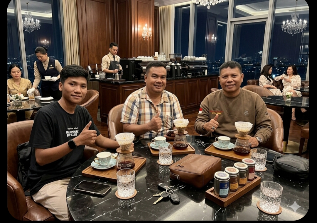 Suasana santai namun penuh makna terlihat dalam kegiatan silaturahmi yang digelar di salah satu warung kopi di Kota Rantauprapat, Kabupaten Labuhanbatu, Sumatera Utara, pada Sabtu (28/3/2026).