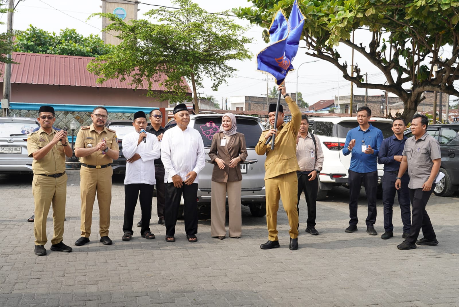 Selanjutnya Wakil Bupati Batu Bara bersama Pls. Pimpinan Cabang Bank Sumut Lima Puluh secara resmi melepas keberangkatan para calon jemaah untuk mengikuti manasik haji.