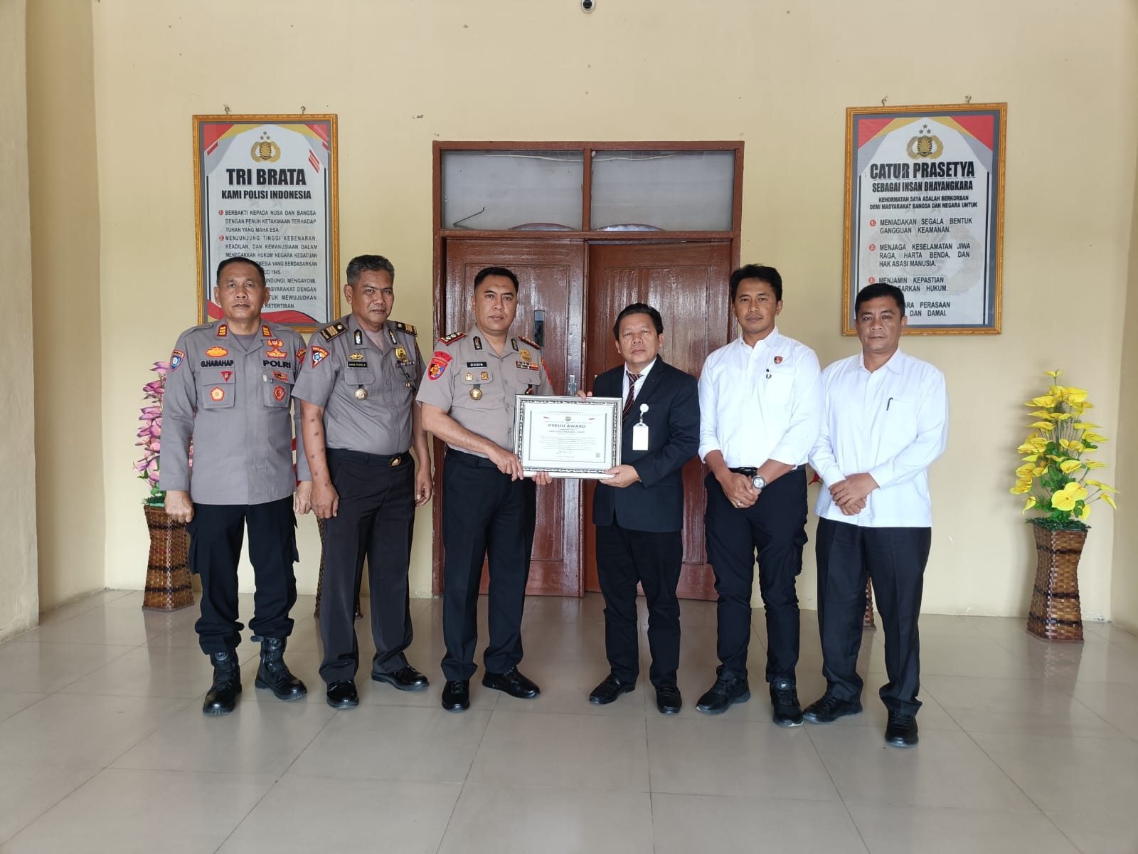 Padang lawas-Li Kapolres Padang Lawas AKBP Dodik Yulianto S.IK menerima Piagam Penghargaan Dari Ketua Lemkapi Dr.Drs Edi Saputra Hasibuan SH.MH di Polres Padang Lawas,Senin,(13/04/2026) Siang.