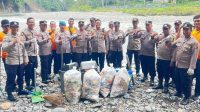 Polsek Padang Tualang Gotong Royong Bersihkan Ekowisata Tangkahan, Warga Apresiasi Kepedulian Polri.
