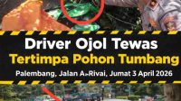 PALEMBANG, LINGKARAN ISTANA — Seorang pengemudi ojek online (ojol) dilaporkan meninggal dunia setelah tertimpa pohon […]